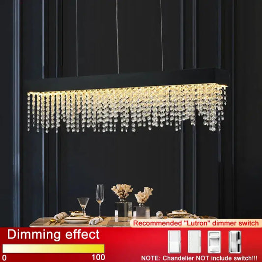 Luxuriöser rechteckiger Kristall-Kronleuchter für Esszimmer, Bar, Küche