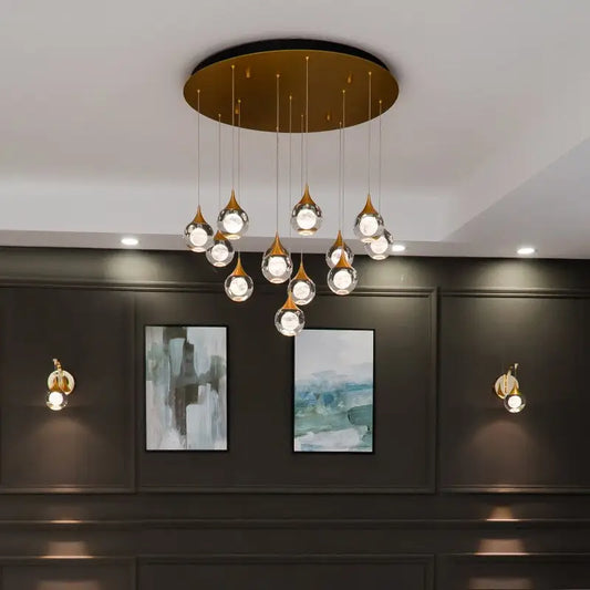 Kreativer Spiral-Kronleuchter mit Lampenschirm aus Glaskugeln
