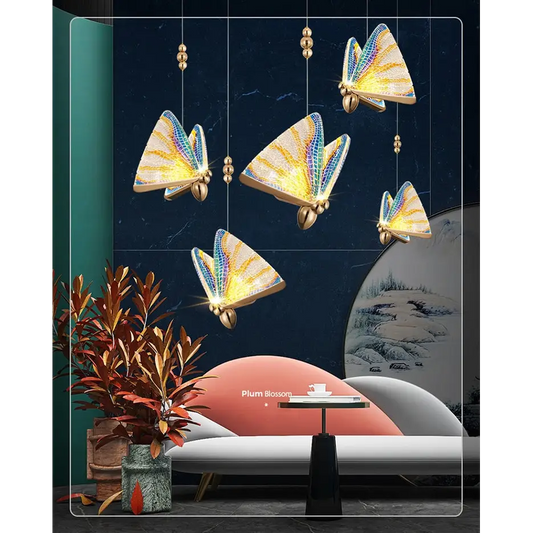 Kreative Kristall-LED-Pendelleuchte mit hängenden Schmetterlingen