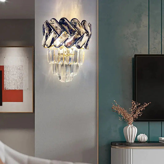 Luxuriöse graue Wandleuchte aus rauchigem Kristall für Wohn- und Schlafzimmer