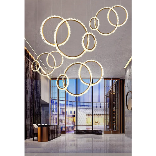 Moderne Kristallring-LED-Pendelleuchte für Wohn- und Esszimmer