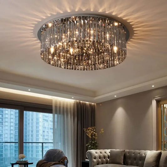Luxuriöser, runder Deckenleuchter aus grauem Kristallglas für Wohnzimmer, Schlafzimmer