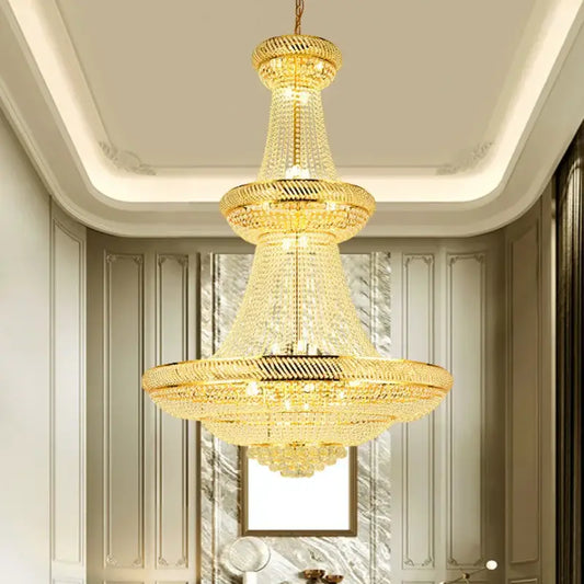 Goldener luxuriöser mehrstöckiger Treppenhaus-Kristallkronleuchter