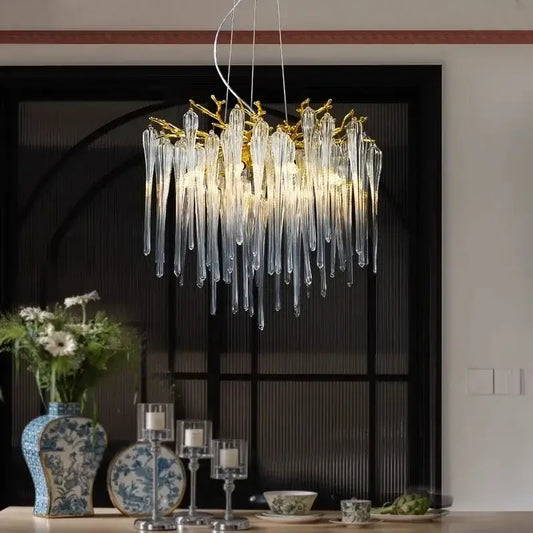 Luxuriöser Kronleuchter aus Kristallglas in Goldzweig-Optik