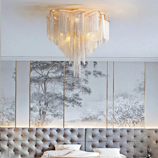 Dimmbarer Deckenleuchter aus Aluminium mit Quasten
