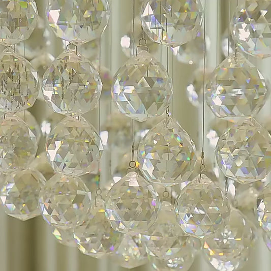 Spiralförmiger Regentropfen-Kristallkugel-LED-Treppenkronleuchter