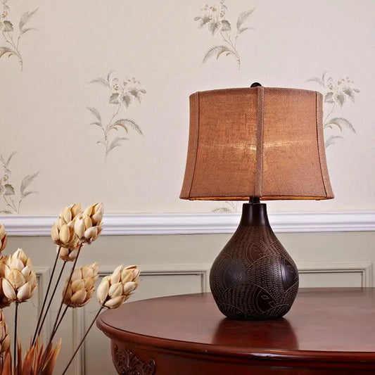 Braune Vintage-Tischlampe mit strukturierter Vase aus Kunstharz