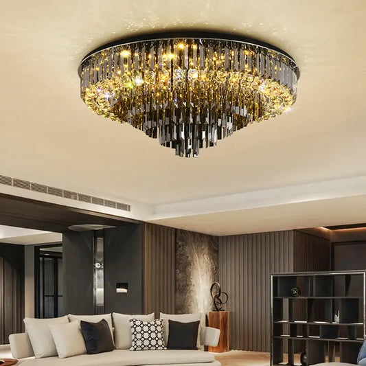 Luxuriöser schwarzer Kristall-Kronleuchter mit runder Decke für Wohn- und Schlafzimmer