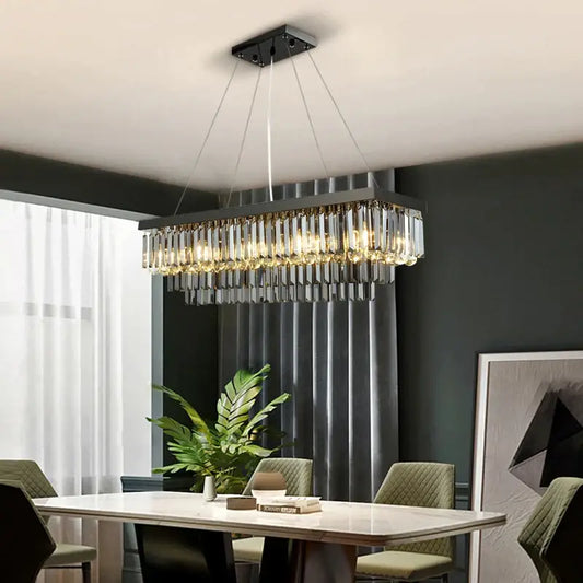 Luxuriöser rechteckiger Kronleuchter aus rauchgrauem Kristall für das Esszimmer
