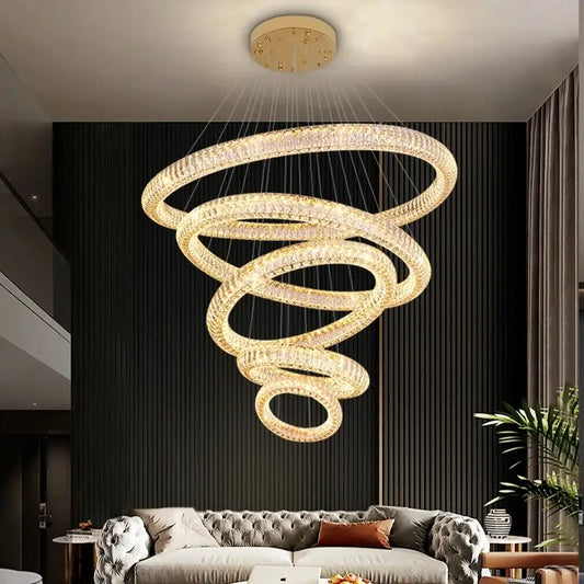 Luxuriöser ringhängender Kristall-Kronleuchter für Treppenhaus, Wohnzimmer