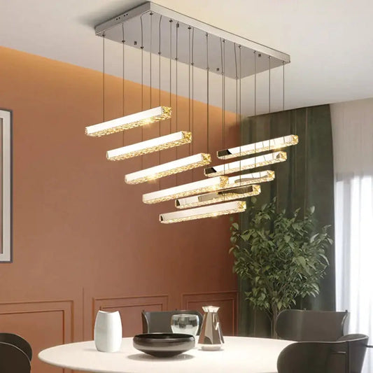 Luxuriöser hängender rechteckiger Kristall-Kronleuchter für Küche und Esszimmer