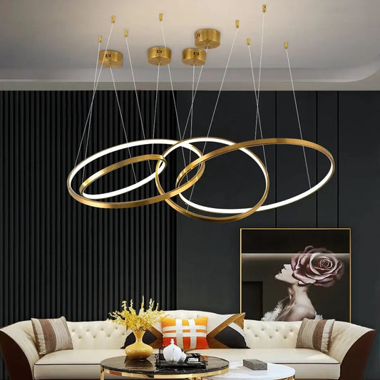 Luxuriöser goldener Hängering-Kronleuchter für Treppenhaus, Wohnzimmer, Flur