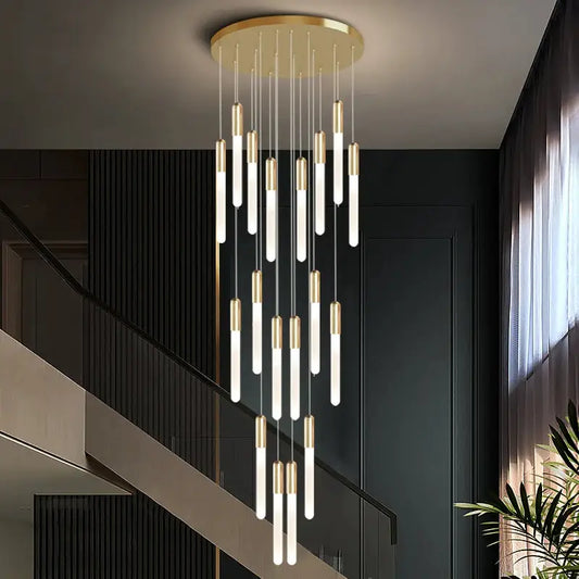 Luxuriöser Kronleuchter mit langen LED-Streifen für Treppenhaus, Lobby