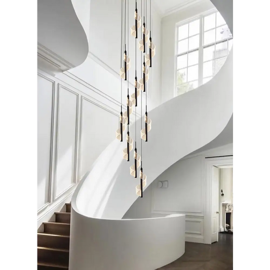 - Anhänger: Anhänger sind Leuchten, die von der Decke hängen und über eine einzelne Schnur oder Kette verfügen, die eine Glühbirne oder einen Schirm hält. Pendelleuchten sind ideal für Treppenhäuser mit niedrigen Decken und kleinen Räumen, da sie ein schlichtes und elegantes Aussehen und eine fokussierte Beleuchtung erzeugen können. Anhänger können auch die Form und Größe der Treppenhäuser verbessern, da sie in verschiedenen Formen, Größen, Farben und Funktionen erhältlich sind, um zu unterschiedlichen Räumen und Grundrissen zu passen.